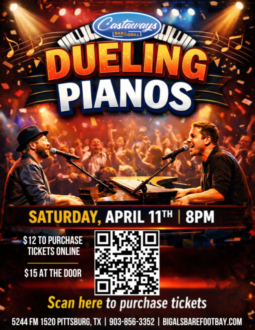 Get ready for a night of music, laughter, and epic sing-alongs as Dueling Pianos take over Big Al's Barefoot Bay & Castaways on Saturday, April 11!