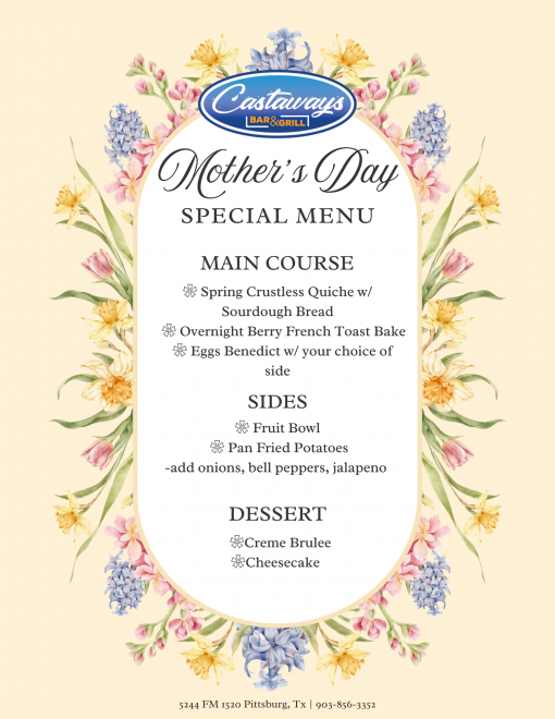 2pm-4pm Moms Paint & Sip Fee of $10 for Supplies Bring friends pr family and a big smile Special Mother's day Menu available 7am-11pm