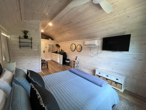 We offer a variety of sizes and amenities to suit your needs, from a cozy 300 sq ft cabin to our spacious 800+ sq ft option.